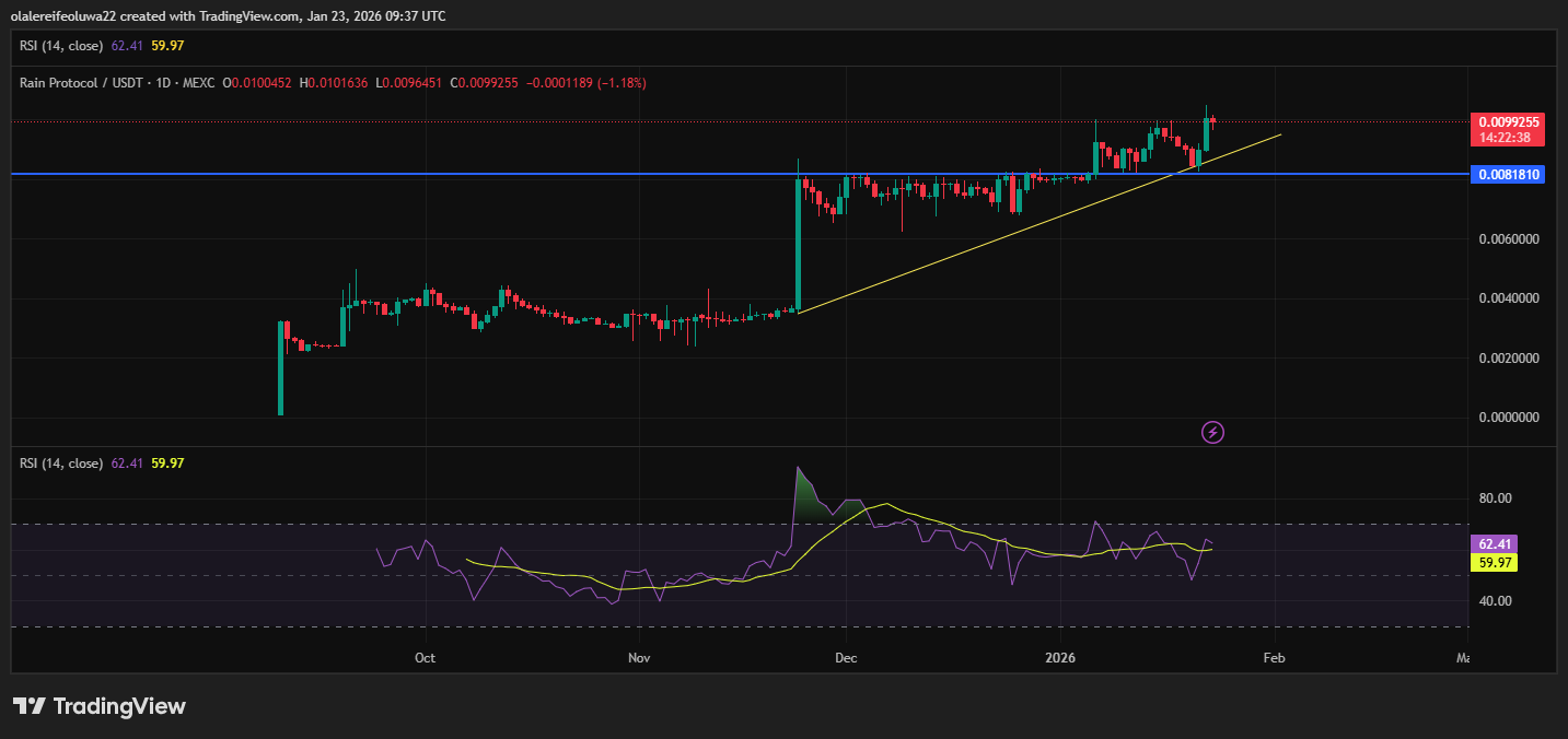 Junto a sus mecanismos de token, Rain Protocol también está ampliando su alcance en el mercado. Las recientes incorporaciones a plataformas de intercambio han mejorado la accesibilidad, la liquidez y la visibilidad general del token. Estas incorporaciones facilitan la entrada de nuevos participantes y respaldan condiciones de negociación más saludables. Combinado con una actividad on-chain en aumento y una estructura de precios más sólida, el crecimiento del ecosistema de Rain sugiere que el proyecto está superando la fase inicial para entrar en una etapa de crecimiento más madura.